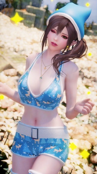 Christmas Elf Outfit by Armistice, a unique made from scratch Christmas theme outfit. The mod comes with Top + Panty+ Stockings + Hat in 3 colors and 4k textures.