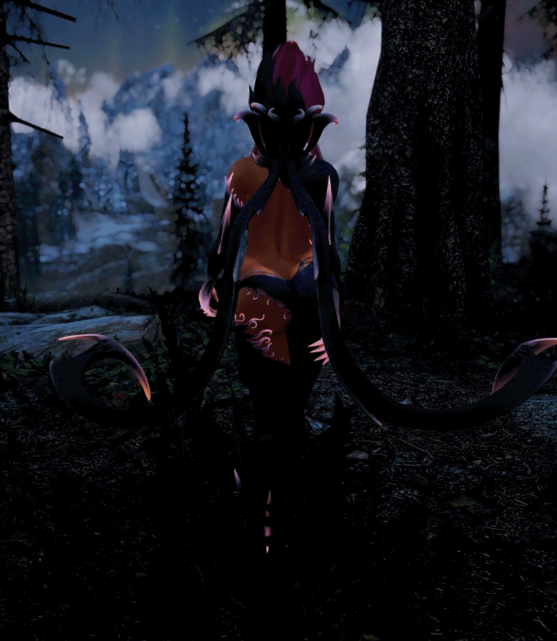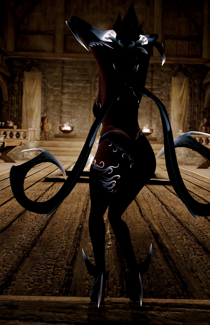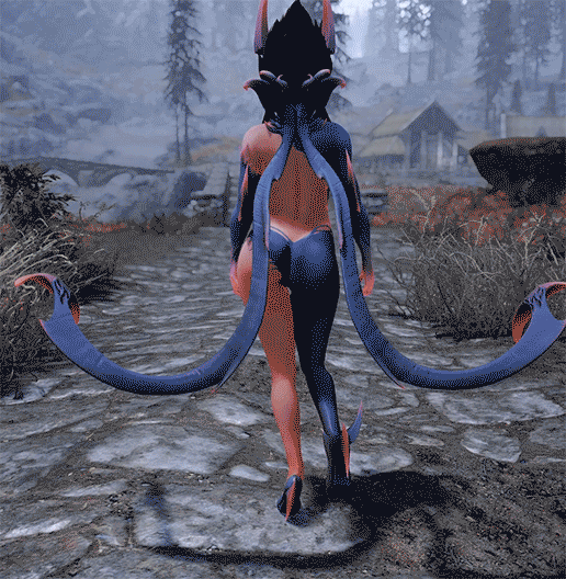 A made from scratch outfit by COCO, featuring the Demon Shade Evelynn outfit from League of Legends. The outfit comes with COCOBody CBBE/UUNP bodyslides support. The Hair and Tail come with HDT-SMP cloth physics physics.