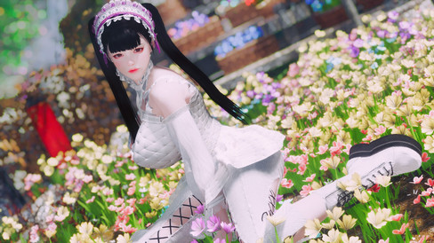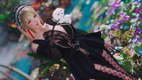 A made from scratch outfit by COCO, featuring a unique Gothic style dress. The outfit comes with COCOBody CBBE/UUNP bodyslides support. The Hair, Top, Arms, and Necklace come with HDT-SMP cloth physics.