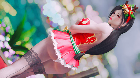 Xmas Pack by Xuniana, featuring a unique Christmas theme outfit set. The outfit come with two dresses, scarf, and stocking & heels in 5 different textures styles with CBBE 3BA and COCOBody CBBE/UUNP bodyslides support.
